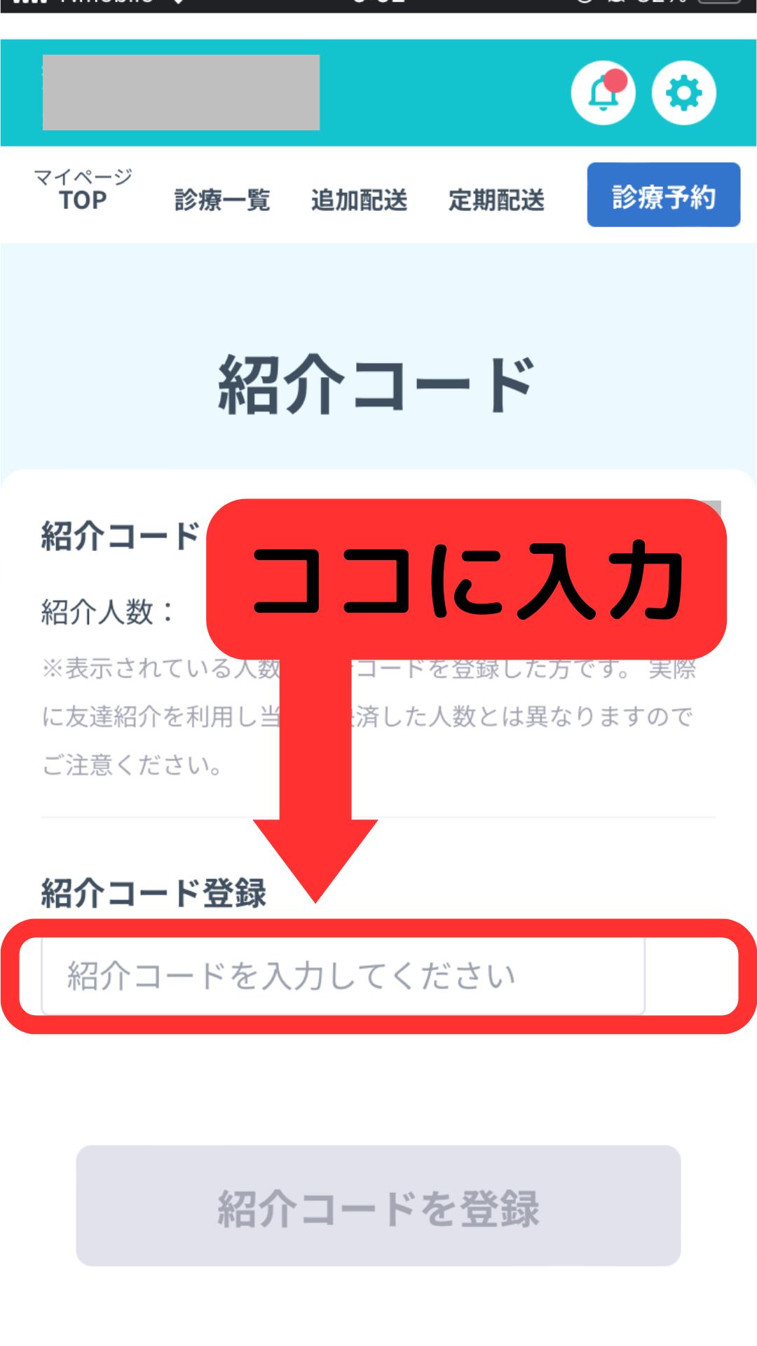 公式サイトから予約し、問診票を記入する時に『クーポンまたは紹介者』のところに『3243』と4桁の数字をご記入いただければ紹介割制度が適用になります。