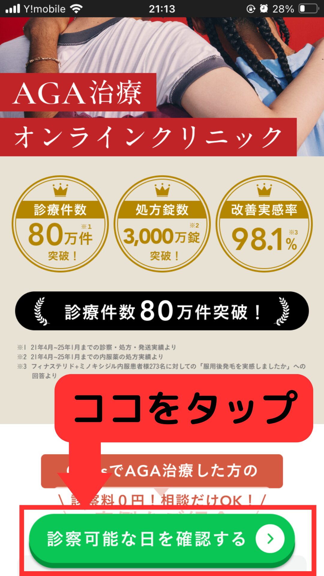 オンライン診療のやり方(予約~治療薬が届くまでの流れ)をスマホ画面を使って解説していきます。